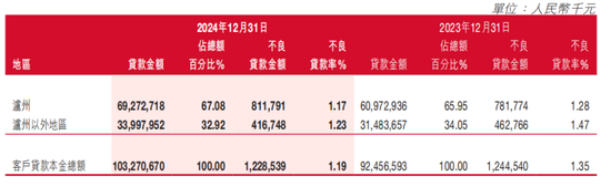 按照地区分布来看,2024年,泸州银行占比超过67%的贷款集中于泸州本地,泸州以外地区贷款占比仅为32.92%。